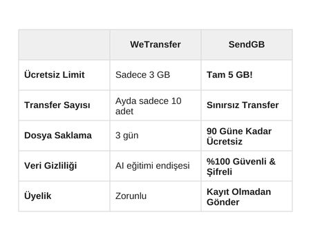 WeTransfer, Bending Spoons yönetiminde daha kapalı, daha kısıtlı ve veri gizliliği konusunda şüphe uyandıran bir platforma dönüştü. Eğer siz de aylık 10 transfer sınırına takılmak istemiyor ve dosyalarınızın yapay zeka botları tarafından taranmasından korkuyorsanız, SendGB sizin için en güvenli ve özgür liman.